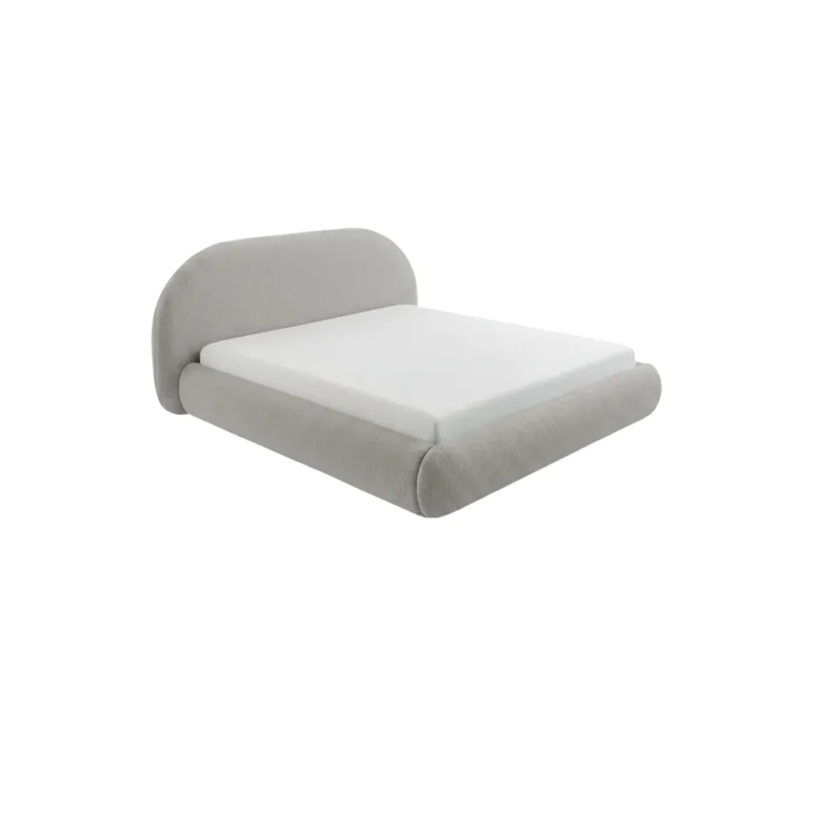 The Allcovered Arca Bed is a study in continuous curves and low-profile geometry. Rejecting sharp angles and traditional structural lines, it features a sculptural, wraparound base with exaggerated, pillowy proportions.