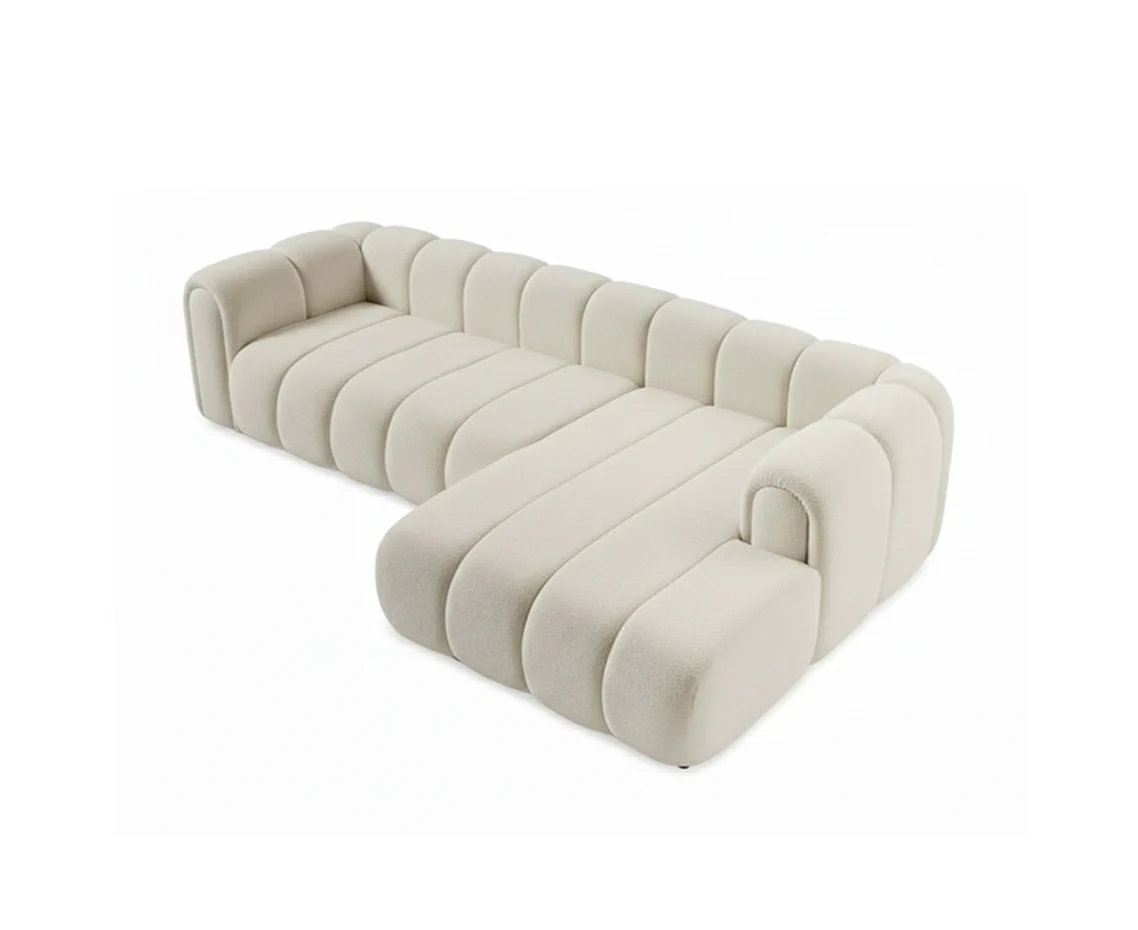The Ridge Sectional is a study in sculptural repetition and extended curvature.